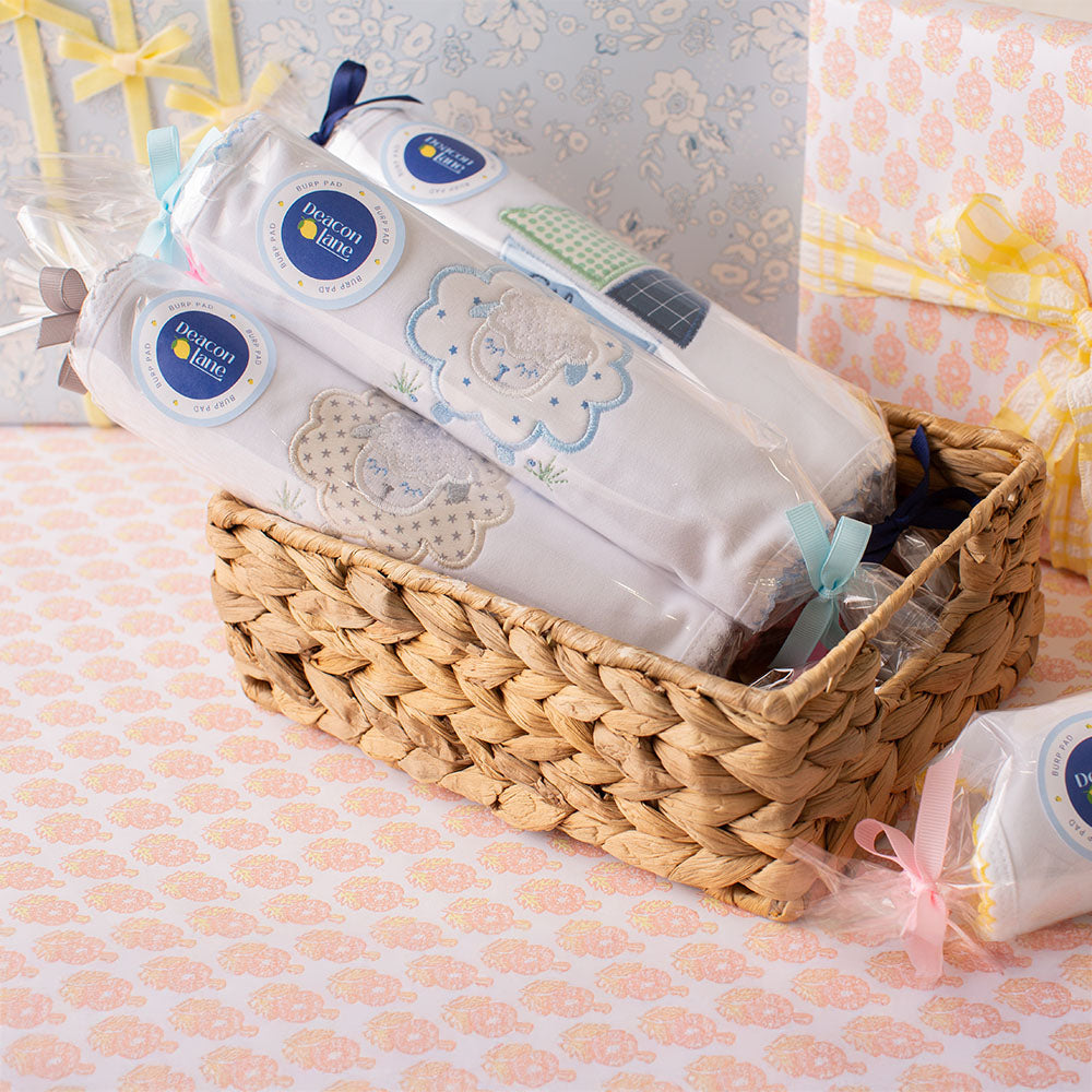 Our bib and burp pad sets are thoughtfully paired for easy gifting.