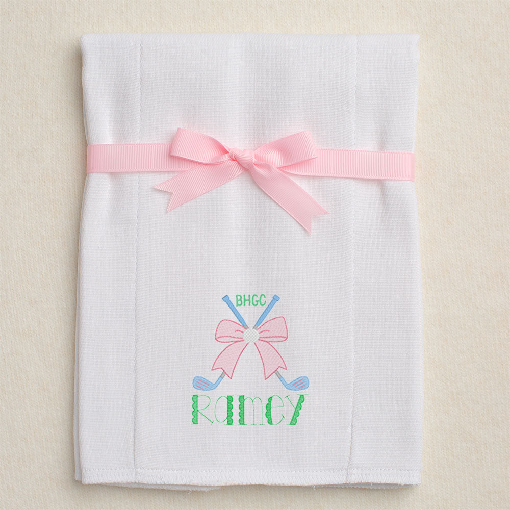 This monogram, perfect for a personalized baby gift, allows you to specify the three letters and select up to three thread colors. For a one color monogram, please specify the same color in the first and second choices. The third selection will apply to the frame.